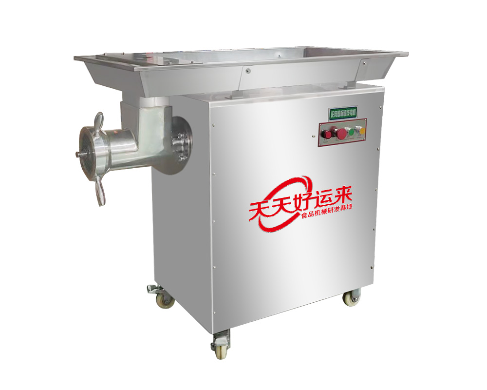 絞肉機(jī)為系列產(chǎn)品:工作時(shí)利用轉(zhuǎn)動(dòng)的切刀刃和孔板上孔眼刃形成的剪切作用將原料肉切碎,并在螺桿擠壓力的作用下,將原料不斷排出機(jī)外。可根據(jù)物料性質(zhì)和加工要求的不同,配置相應(yīng)的刀具和孔板,即可加工出不同尺寸的顆粒,以滿(mǎn)足下道工序的工藝要求。用途:該款絞肉機(jī)可用于加工各種凍肉、鮮肉、雞鴨骨架、豬皮、牛皮、雞皮、魚(yú)類(lèi)、水果、蔬菜等。